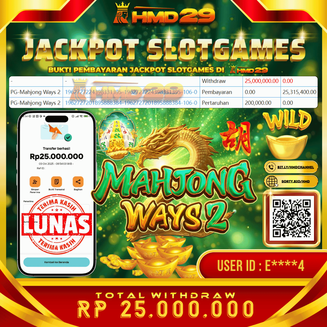 HMD29 JACKPOT SLOT MAHJONG WAYS 2 RP 25,000,000 ,- LUNAS