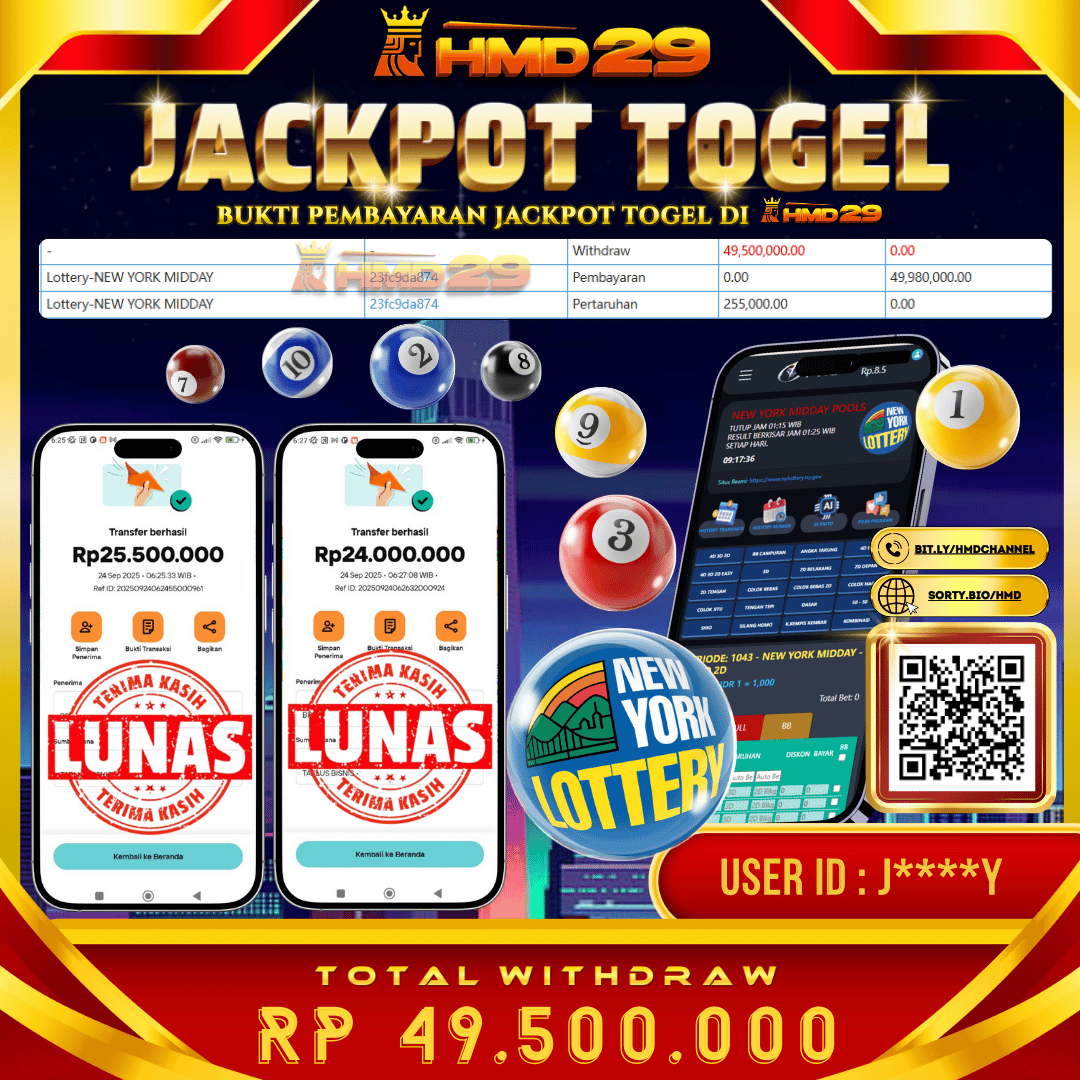 HMD29 JACKPOT TOGEL NEWYORK MID RP 49,500,000 ,- LUNAS