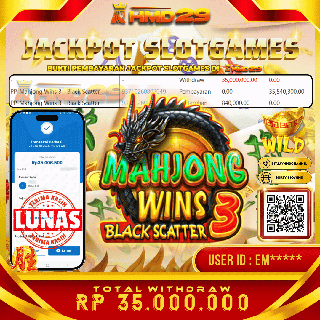 HMD29 JACKPOT SLOT MAHJONG WINS 3 RP 30,000,000 ,- LUNAS